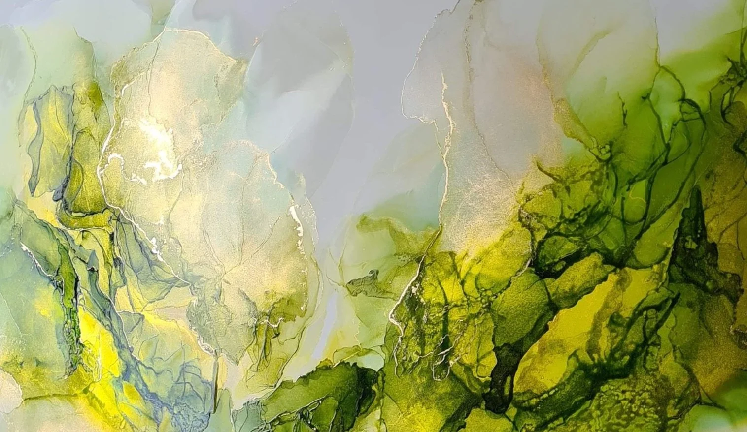 MATERIALS: Yupo Paper (soft white), Alcohol Inks, Brass Metallic and Isopropyl Alcohol.